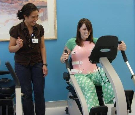 Everyday, I had to get up and walk. I’d engage my ab muscles, and I’d have help in getting into a sitting position at the side of the hospital bed. Then I’d put my hands on the walker in front of me, and my arms would be shaking as I’d use all my strength to stand up. I’d have two people on either side of me at first, holding me under my arms. I’d swing my left leg forward—which was “dead” (I could feel everything, but it wouldn’t do anything I told it to), and I’d lock the knee. Then I’d lean until my weight was in a straight line over my hip, and I’d step my right leg forward. Then I would do it all over again. In this way, I’d get 10-20 steps in, and count that as a huge success.