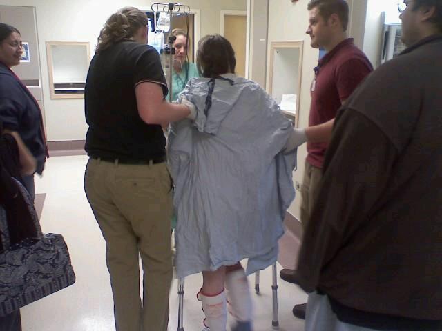 They sat me up a bit, I tried to lick my lips, but my mouth was dry. I asked for some water, but they said they couldn’t give me any, so I crunched on some ice chips. Then they explained I needed to get up and try to walk a bit. It felt like a building’s worth of rebar had been installed in my spine, and they wanted me to walk?