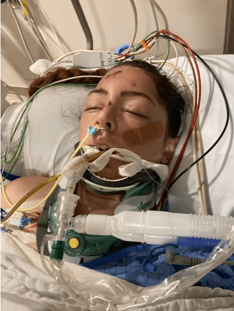 Since the incident she has never actually been awake. She complained about her ribs just before her first procedures in the ER, but has been out since. They tried to extubate (take her off the ventilator) yesterday, but she didn’t respond well enough, yet, so they left it in. They are doing an EGG to check her brain waves, but that takes 24hrs, so no results yet.