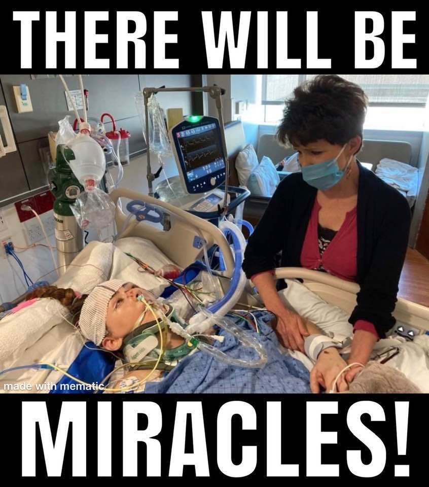 My prayers: 1. Gratitude that her parents and medical teams were able to save her life. 2. Praying for the strokes to stop. 3. Praying that she’ll walk, again, 4. That all the broken bones and injured organs will heal, and 5, that this whole thing will spark emotional and spiritual healing rather than the opposite.