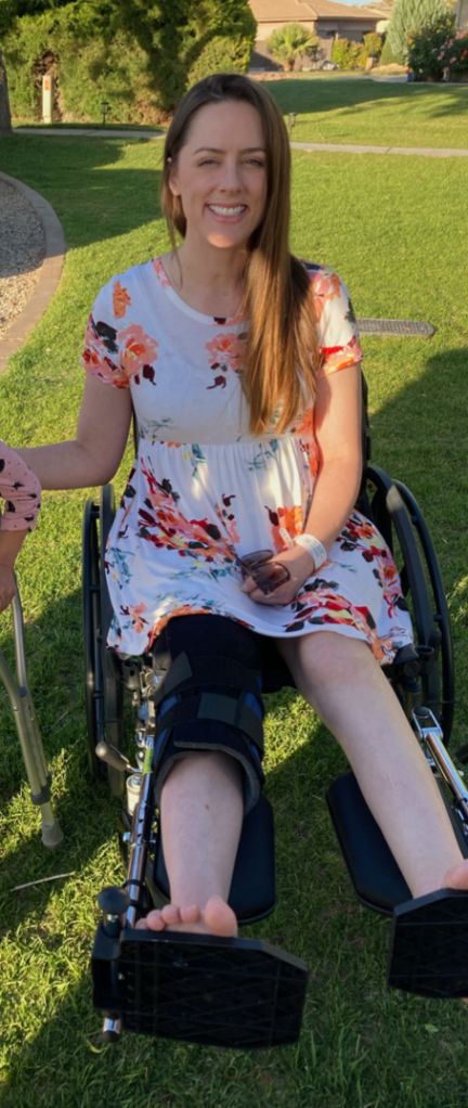 So…earlier today around 10:30 am, I fractured my femur. Della and I were going to a therapy appointment, and I took a tumble in the gravel. I immediately felt something snap when I landed crookedly on my leg—and I knew that my femur was broken. I looked down at my leg, and it was bent weirdly where it shouldn’t be. I thought: “that does NOT look right…”
